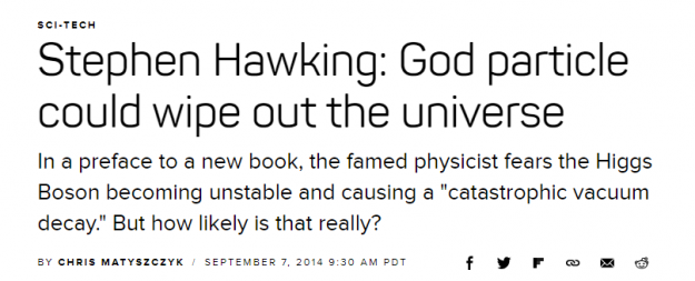 Hawking even warned that the quest to discover the Higgs Boson might destroy the universe!!!!