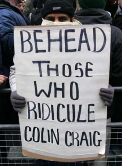 Earlier this week, however, Colin Craig was threatening to sue those who ridicule Colin Craig. Suing is so much more civilised than beheading, but both belong on the same slippery slope. Threats to sue those who ridicule Colin Craig and threats to behead all those who insult the Prophet both have a chilling effect on free speech.