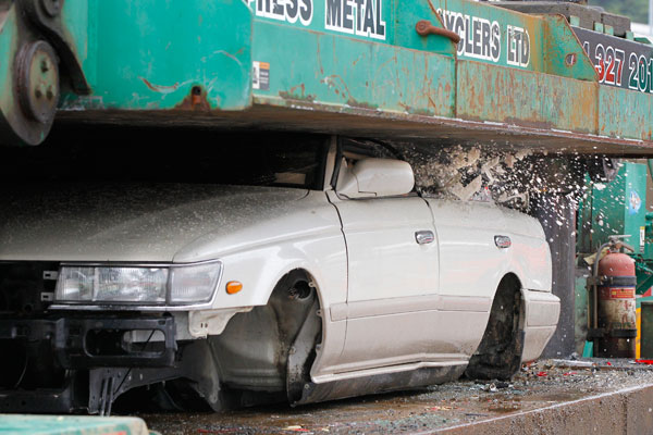 19-year-old Daniel Briant’s car, a Nissan Laurel, was crushed yesterday. It became the first car to be crushed under National’s “boy racer” legislation—the Vehicle Confiscation and Seizure Bill, 2008.