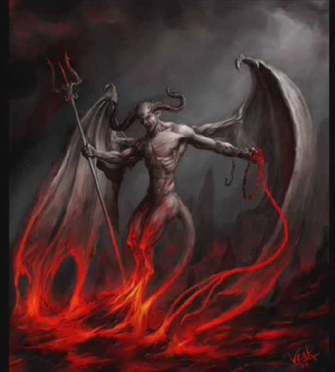 Satan laughing spreads his wings.