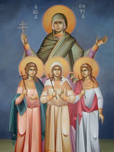 The martyrdom of Sophia and her daughters is one of the most heartwrenching in the whole Church. The Emperor Hadrian sought the recantation of Sophia, and devised that her three daughters, named for the virtues of the Apostle Paul, should sacrifice to Artemis or be killed so that she might recant. Her daughters, one by one, were tortured and killed. Sophia herself was not killed, but died of heartache three days later. It is unimaginable to think what she suffered for Christ. But now she is glorified, and reigns with Him.